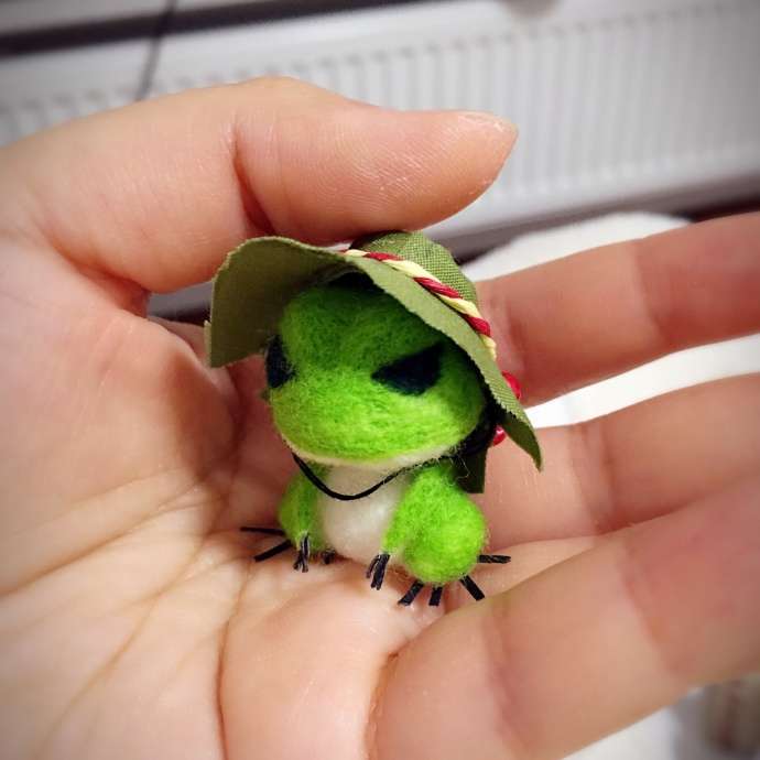 ▼其實之前也已經有日本網友分享了自己打造的羊毛氈旅蛙,同樣完成度也是非常的高!