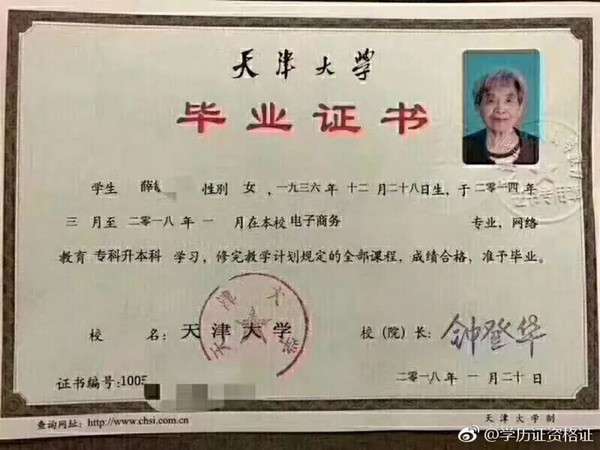 2018年02月02日「活到老,學到老」是一種令人尊敬的人生態度,但有實踐起來絕對有難度。中國天津市一位81歲的老奶奶就真的創下了令人嘆服的成果,她不但從天津大學電子商務畢業,還學會另外4種外語,堪稱超級學霸!