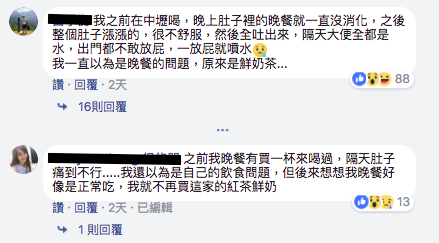 ▼這項檢驗結果,引起許多網友共鳴,紛紛分享自己飲用紅茶鮮奶的不好經驗,幾乎都是喝完肚子痛或腹瀉。