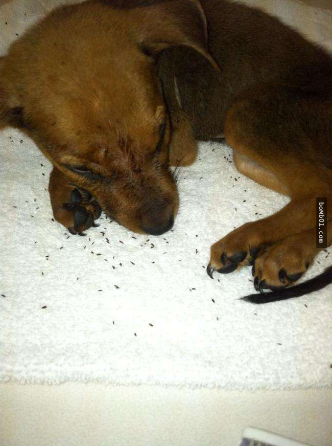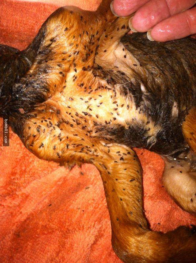 ▼洗過澡後,無數死掉的跳蚤從牠身上掉下來。
