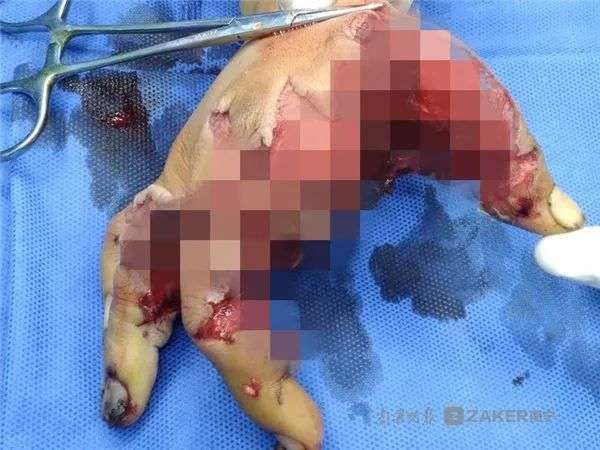 ▼醫生介紹,小明被送到醫院時,斷離的食指沒有一起帶過來。他的斷指被炸得只剩一點點,手掌嚴重受損,幾根手指沒辦法供血,醫生考慮再三後決定不為他接食指,努力搶救其他手指。