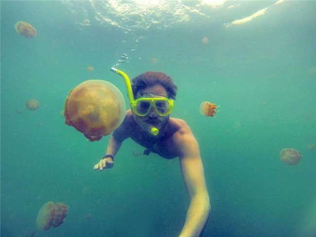 ▼喜歡潛水,和海洋生物近距離的接觸。
