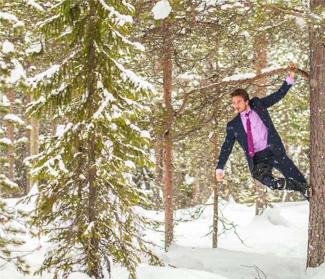 ▼他喜歡穿著西裝,在冰天雪地裡做任何事情,垂釣、露營、騎腳踏車換做別人一定覺得太瘋狂了,但是在他身上只看到了優雅和迷人。