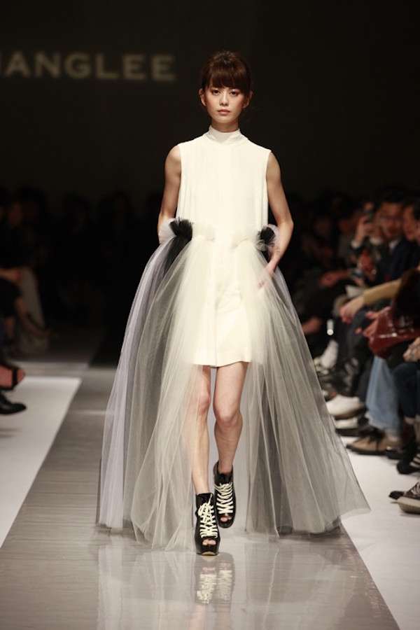 ▼DOUCHANGLEE本次的春夏大秀以「交互作用(INTERACTION)」為題,探索人與服裝的更多可能性,女性可以穿上襯衫、西裝,男性也可以穿上百摺、蕾絲,打破性別藩籬。壓軸的白癡公主則以白色襯衫式透視紗裙洋裝登場。