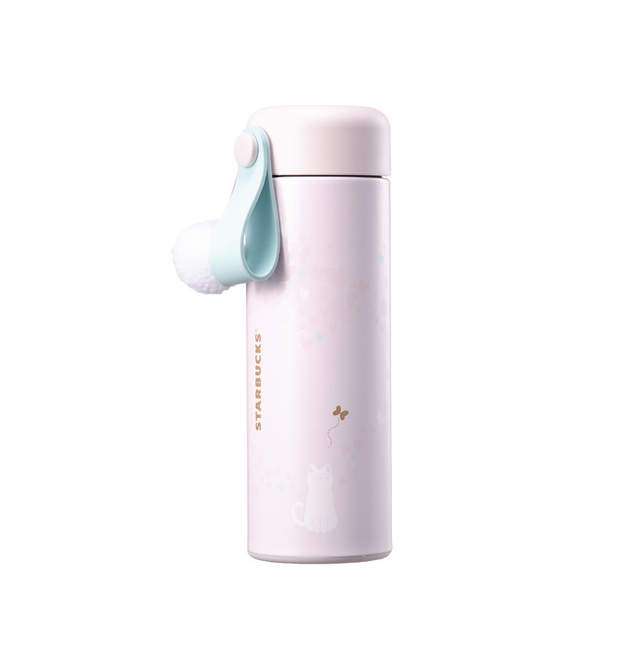 ▼粉紅色的保溫瓶很可愛,加上一顆毛球,心都要被萌化了!