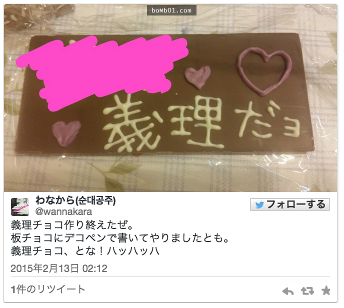 ▼「朋友巧克力!簡單的用巧克力筆畫好就完成。」