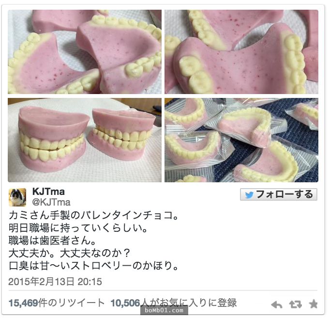 「KAMI小姐親手做的情人節巧克力!明天拿去送公司的牙醫們,不臭的,是甜甜的草莓味啊」