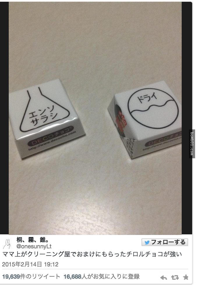 ▼「媽媽從洗衣店小姐收到的巧克力」