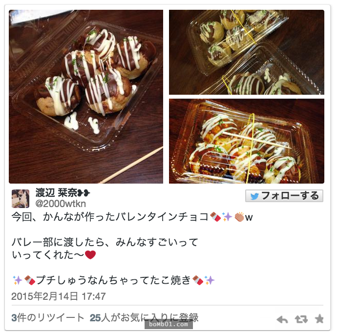 ▼「這是KANA小姐做的情人節巧克力!要送給手球學會的同學!是甜泡芺製的燒章魚燒!」