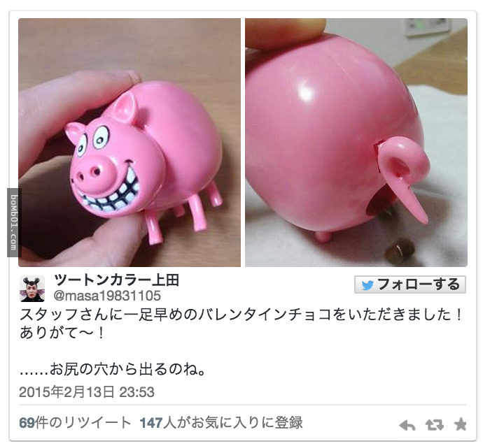 「同事送的情人節巧克力,但是巧克力從屁屁走出來的…」
