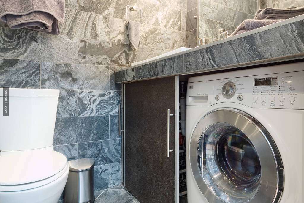 ▼在馬桶旁隱藏著一台洗衣機。