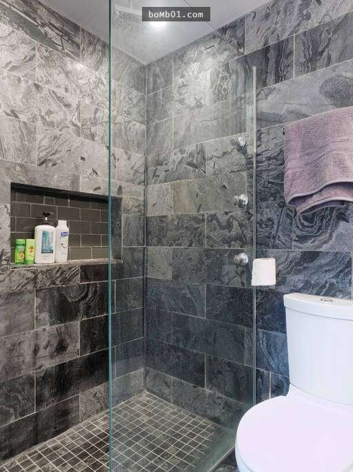 ▼浴室的牆磚圖案選擇了帶有老舊感的,使其更有特色。