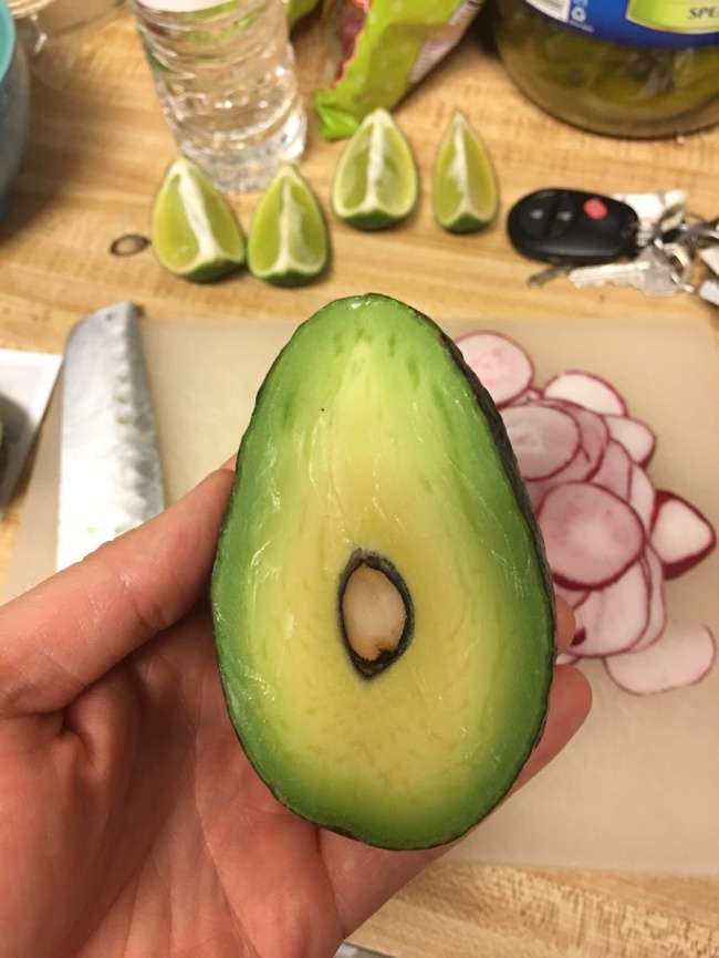 ▼切開酪梨發現種子只有小小一粒。