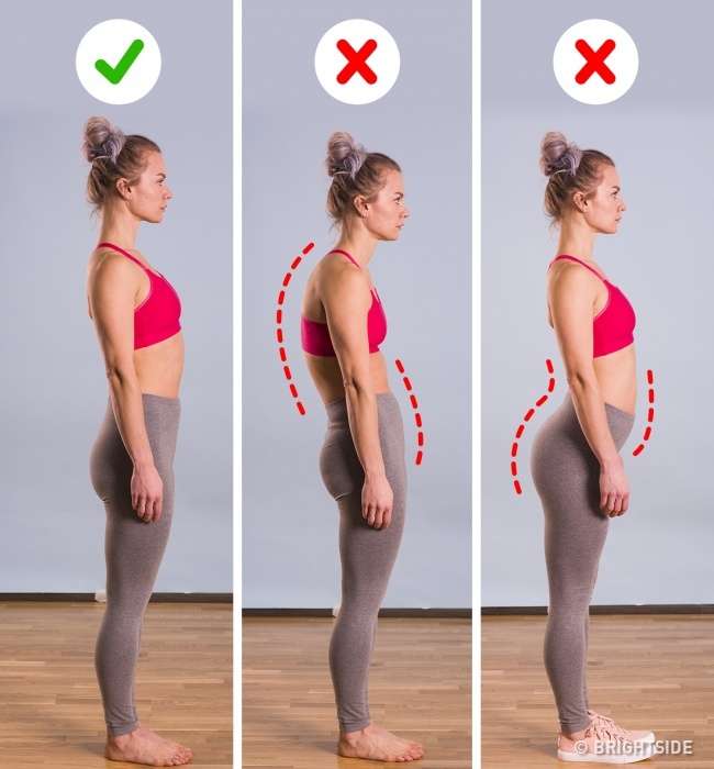 放鬆、自然地站著,讓別人看看你的樣子。如果你的背部拱起45度以上,而且臀部往前推出,代表你的脊椎彎曲嚴重,有脊椎後凸的症狀。脊椎凹陷也代表你脊椎有問題,在這些狀況下,你都該去看醫生,以獲得正確的診斷和治療。