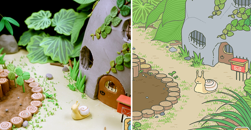 ▼有玩「旅行青蛙」的朋友們對於這個畫面相信都不會陌生吧,來看看這對姐弟神還原遊戲畫面場景的蛋糕吧!