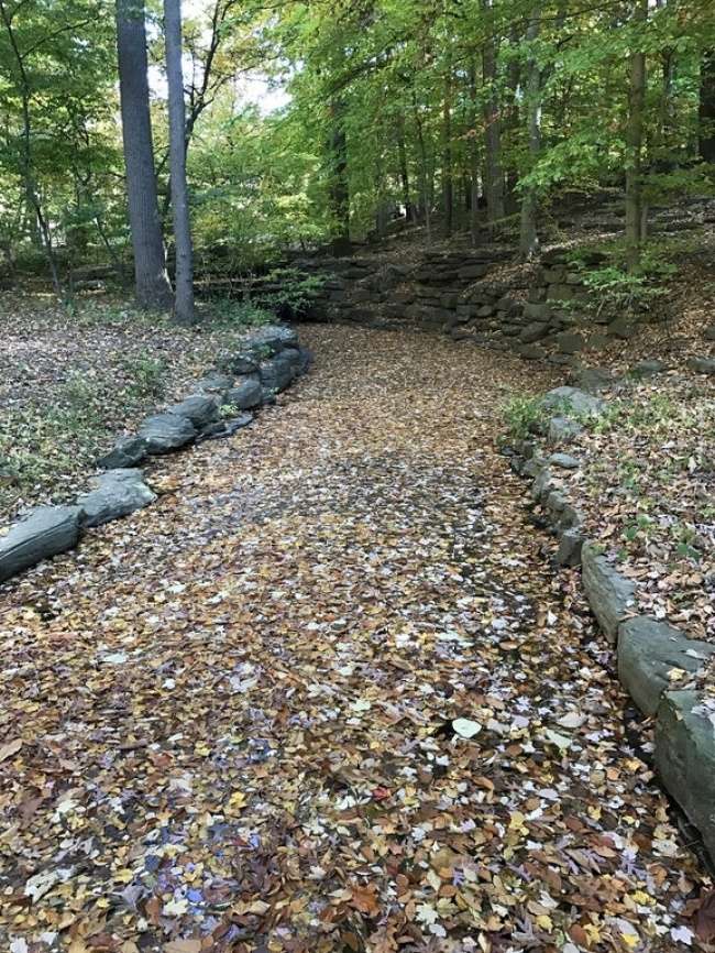▼被落葉覆蓋的河流看上去更像一條林間小路。