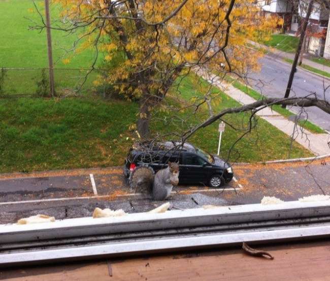 ▼想要鑽進汽車裡的巨形松鼠。