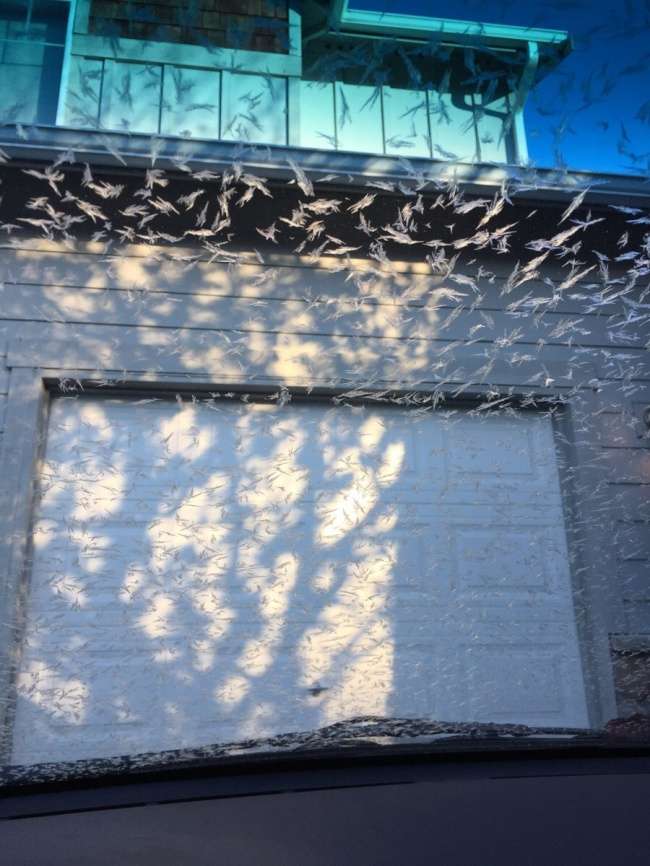 ▼玻璃上的冰花變成飛舞的鳥兒。