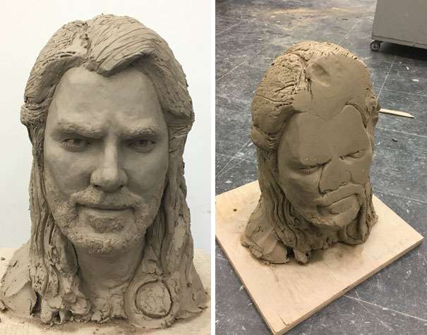 ▼好不容易做了石雕像,是誰把它摔到地上…
