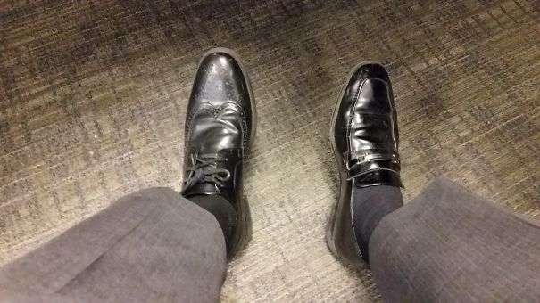 ▼上了一整天的班,偶然低頭往下看,才發現這件蠢事。