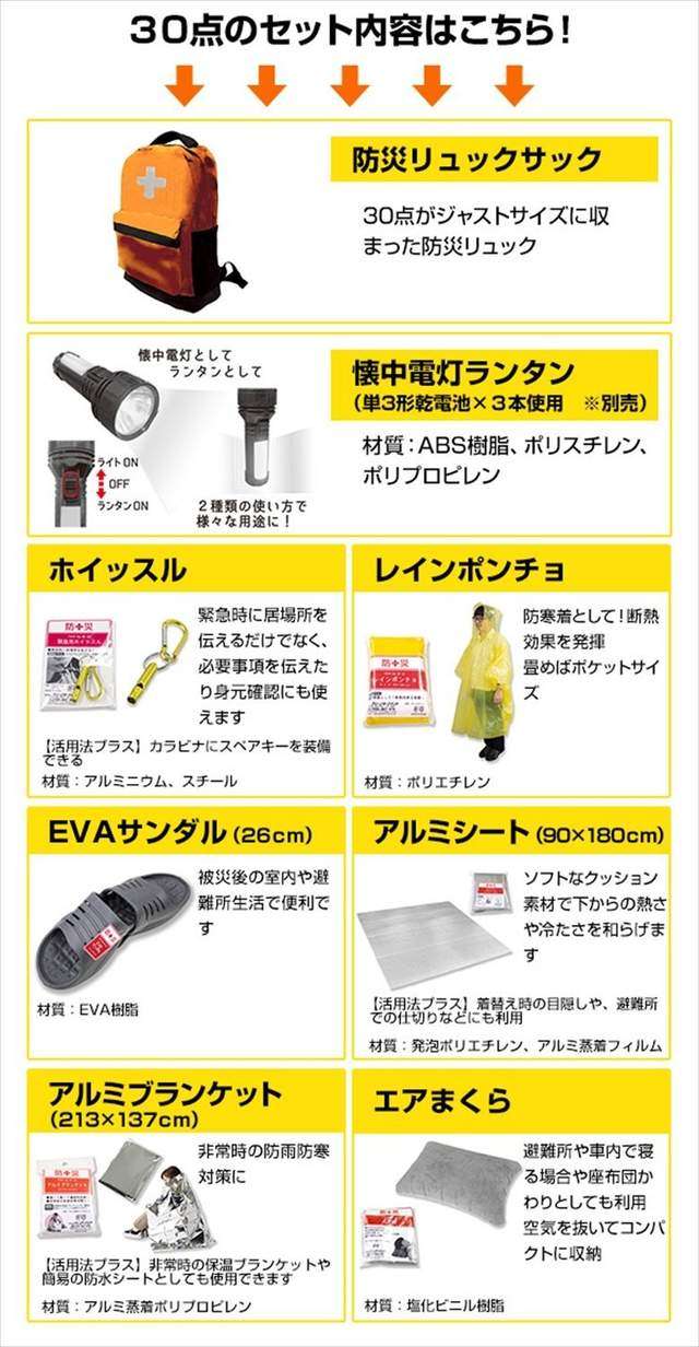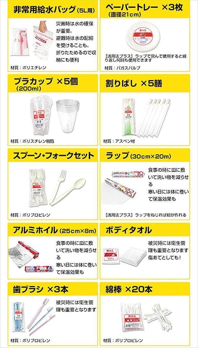▼至於緊急避難包的部分,可以參考以下的內容物:手電筒、口哨、雨衣、拖鞋、鋁箔墊、鋁箔毯、空氣枕、儲水包、免洗餐具杯具、保鮮膜、鋁箔紙、毛巾、牙刷、棉花棒。最後再加上必備的食物和水,就大功告成了!