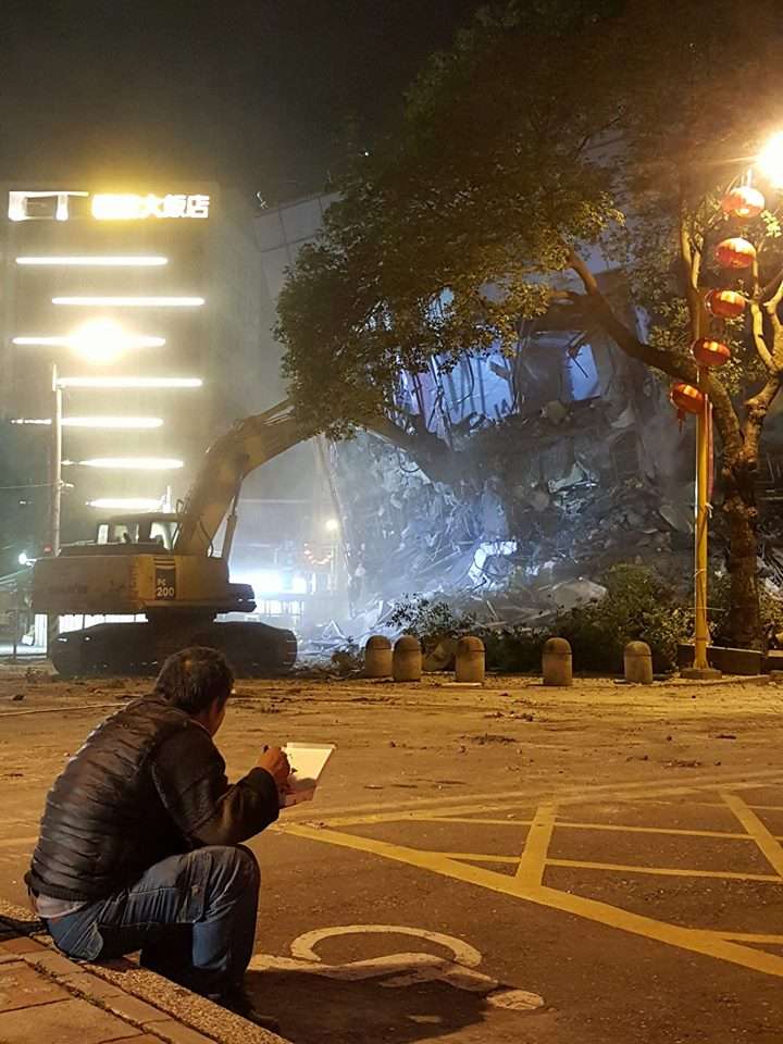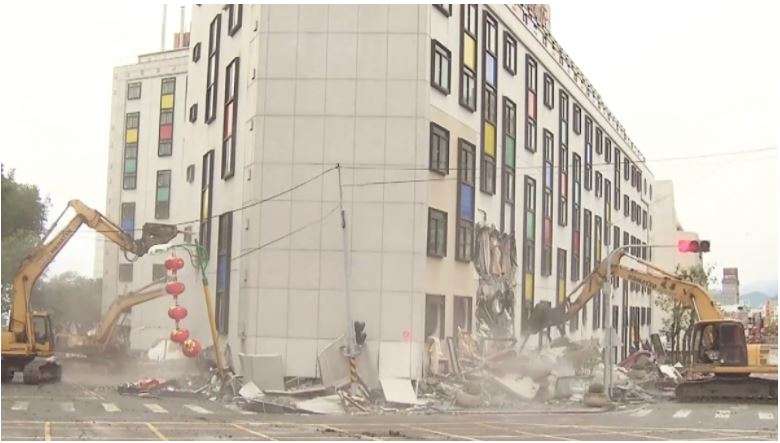 ▼開業於40年的老牌飯店統帥飯店因強震倒塌,嚴重到被列為危樓無法繼續營業,9日大型機具也已經展開拆除作業,預計在一周內完成。