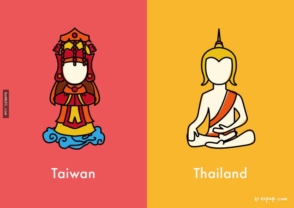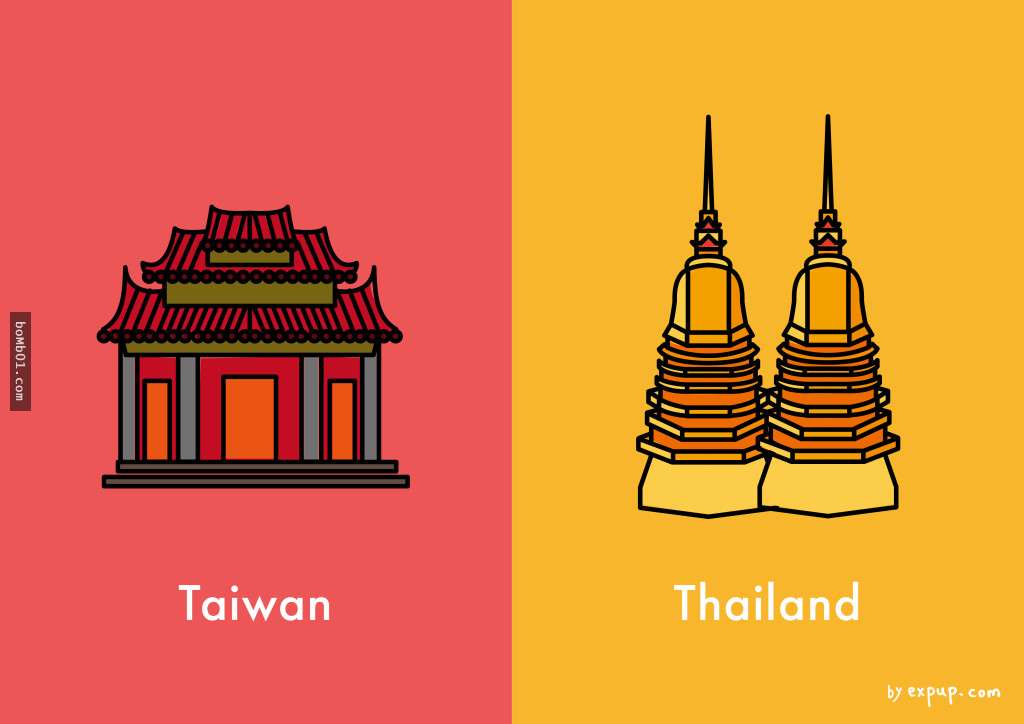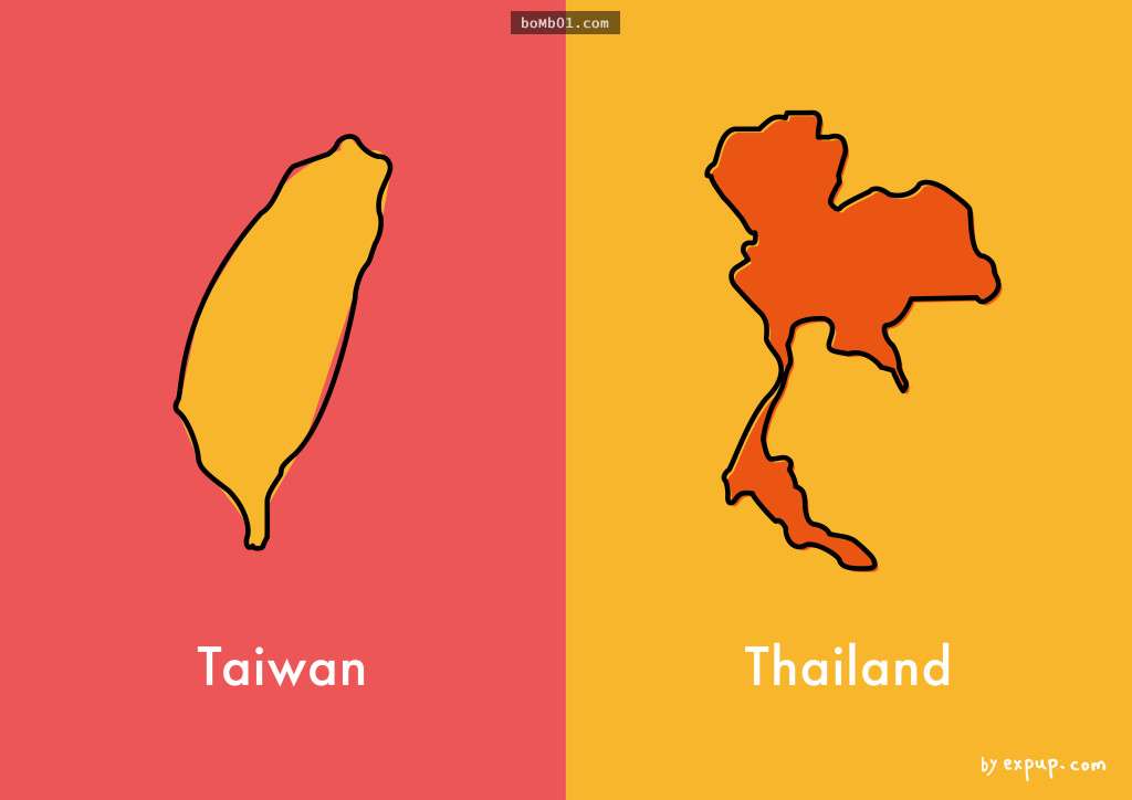 許多曾經出過國的朋友們,可能都遇過一個狀況,就是當外國人問你從哪裡來的時候,當你回答了台灣「Taiwan」,但是對方卻聽成了泰國「Thailand」。除了2個字在英文發音中有一些相似外,其中也因為台灣在國際上的知名度不足,讓大家直接聯想到泰國。最近一個設計公司就推出了10張兩國之間的差異圖,不但清晰明瞭,而且還讓大家印象深刻。