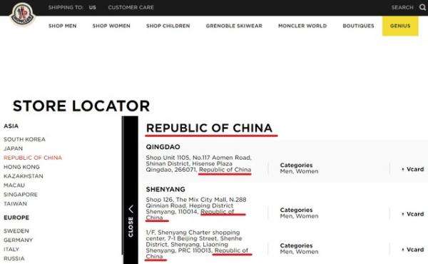 ▼而在中國的分店地址內,也都誤植為「中華民國」的英文,讓許多中國網友氣憤不已揚言罷買。不過台灣網友則是幽默看待這件事,許多網友紛紛表示:「剛好缺一件羽絨衣」、「該買一件來穿了」、「從今開始羽絨衣我只穿Moncler」。