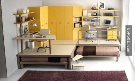 ▼這是專門為青少年所設計的臥室,幾坪小的空間在隱藏式的雙層櫃裡藏著雙人床,非常靈活的設計即使有朋友在家中玩累了也可以提供一張舒適的床能舒服安穩的睡上一覺。