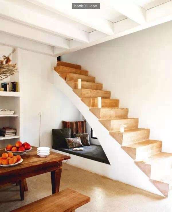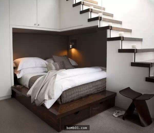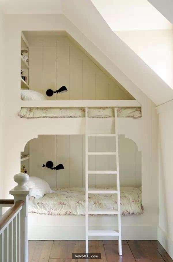 ▼一個樓梯區的頃斜的樓梯角落,巧妙設計上下床鋪,就算家中有客人過夜也不怕沒地方可以睡。