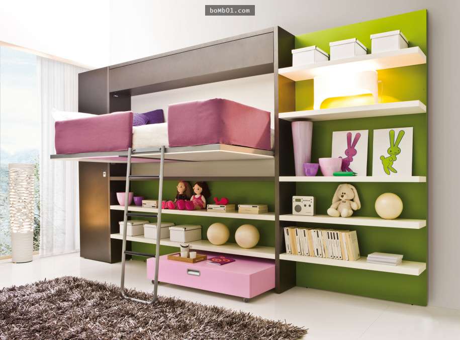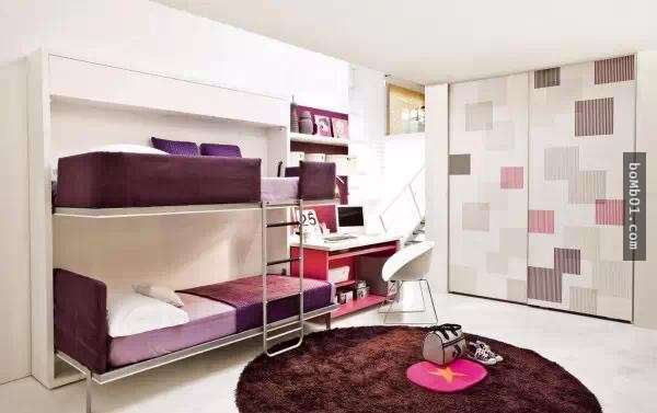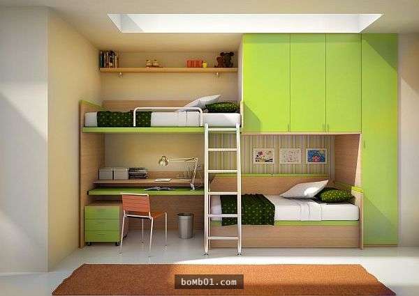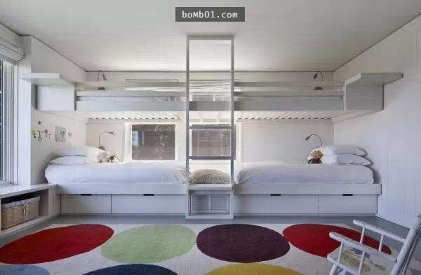 ▼一個空間可以設計成4張床,中間留個樓梯可以爬上去,剩下的空間就留給小朋友玩耍。