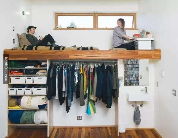 ▼現今土地很貴而狹窄的房子很多,如果能設計成有床、儲物櫃、掛衣間甚至是連洗手台一應具全的房子,這樣的格局也是充分利用了窗邊空間。