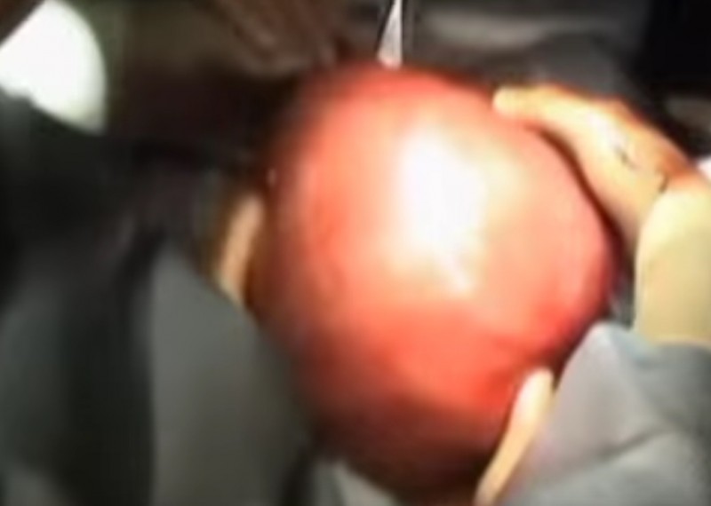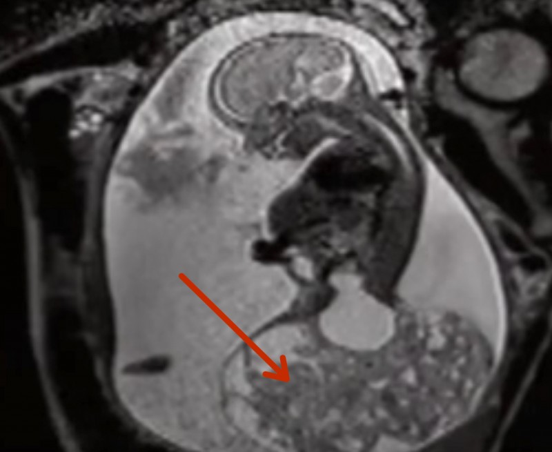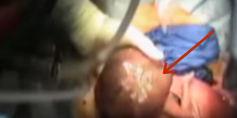 ▼在經過幾個小時的手術後,胎兒身上腫瘤被成功移除,並再次送回母體子宮內。