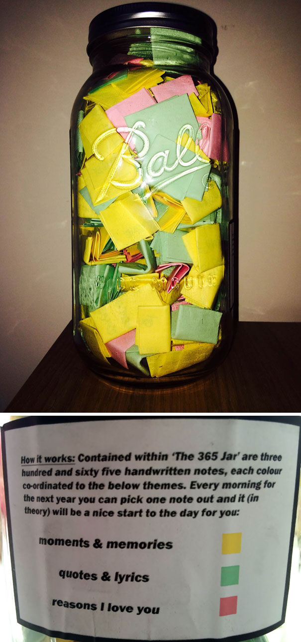 ▼男生為女生所做的365日便條紙,每天打開一張都會有不同的驚喜。