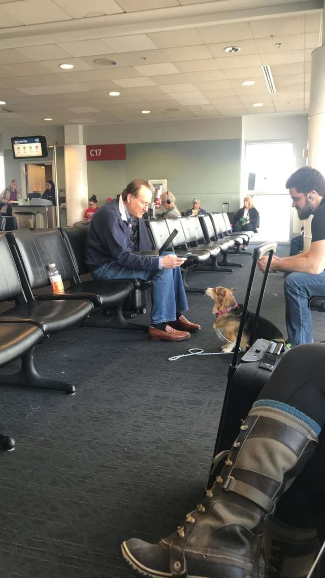 暖心柯基在機場發現「需要被安慰的男人」 牠一靠過去就讓對方眼眶泛淚