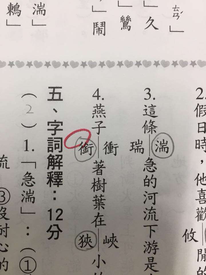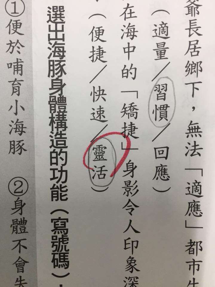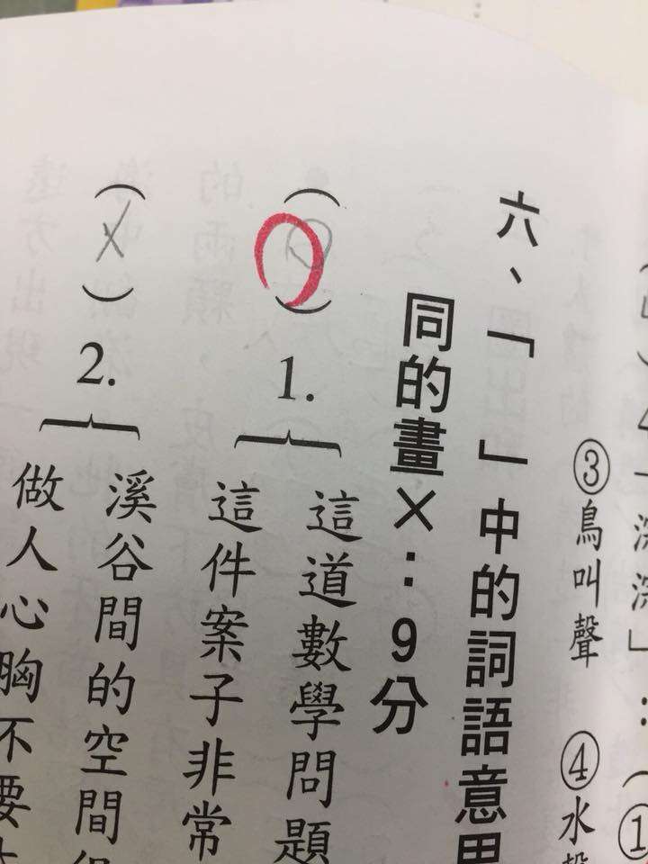 ▼用來學生在作答時畫的圈圈因為沒有畫整齊,被老師用紅筆圈起來糾正。