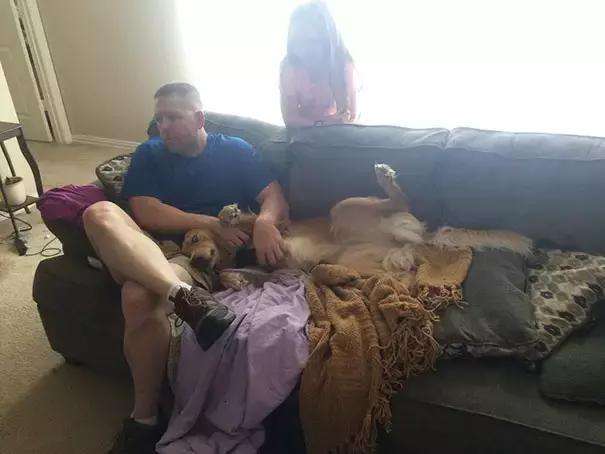 ▼讓女兒站在後方,狗狗躺沙發的好爸爸。