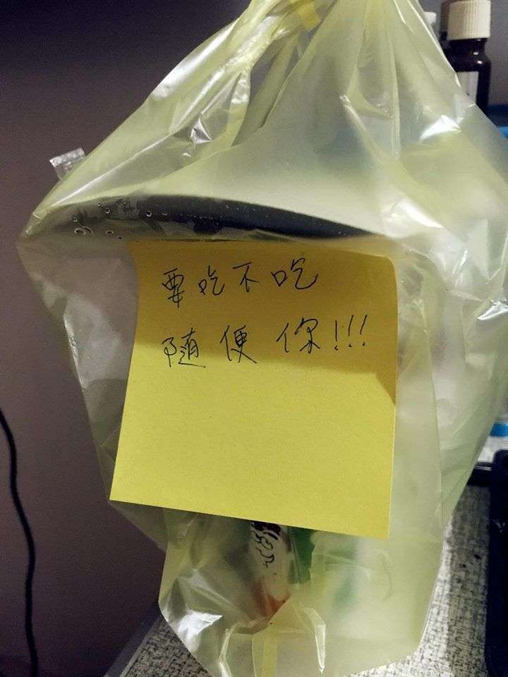 ▼一名女網友在臉書社團「爆料公社」裡分享,跟男友大吵一架之後,卻又不忍心讓男友餓肚子,於是做了早餐放在飯桌上。只是,她還在氣頭上,無法壓抑內心的怒氣,便故意在早餐上貼了小便條「要吃不吃,隨便你!!」