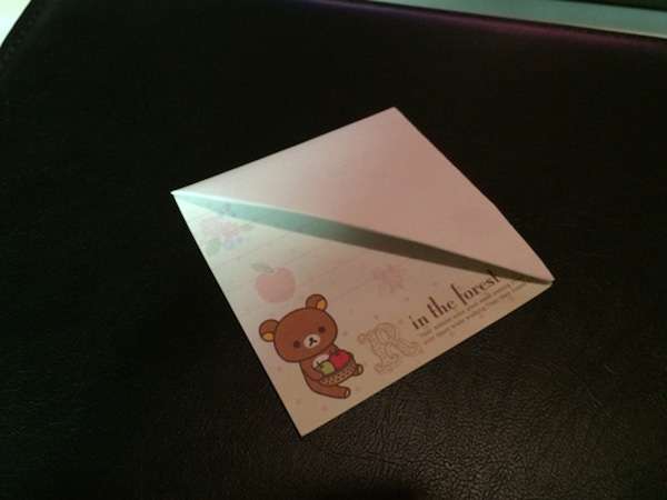 ▼另一個方法是,同樣先準備好一張方形便條紙,斜邊對折。