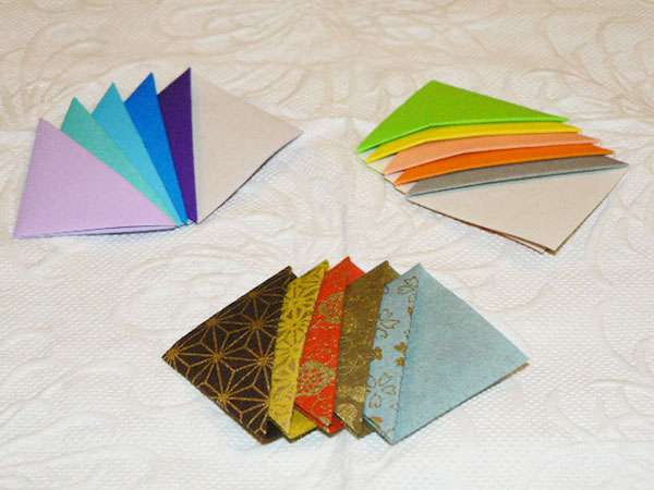 ▼把紙張十字對折,然後左上角折出一個三角形。