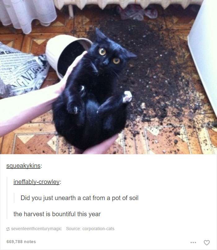▼「你剛從土裡收穫了一隻貓咪嗎?」「今年真是大豐收啊。」