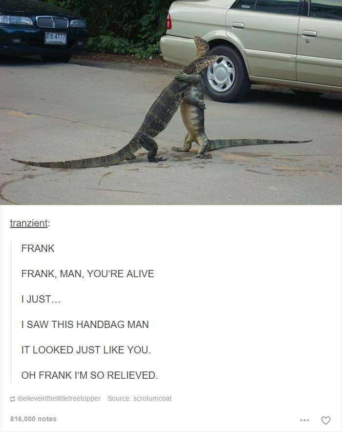 ▼「Frank,你還活著!我剛剛看到一個皮包,長得跟你一模一樣。Frank,我終於放心了……」