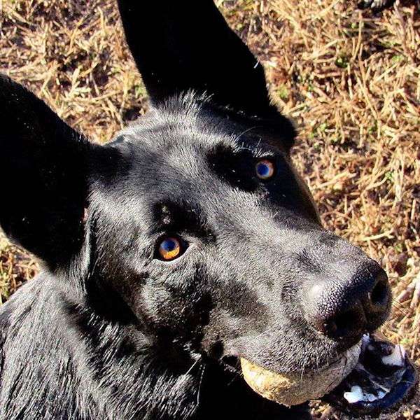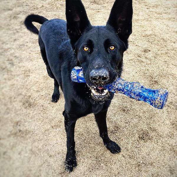 ▼這隻德國牧羊犬名叫高譚(Gotham),平時就很愛玩耍,總露出一副呆萌呆萌的模樣。
