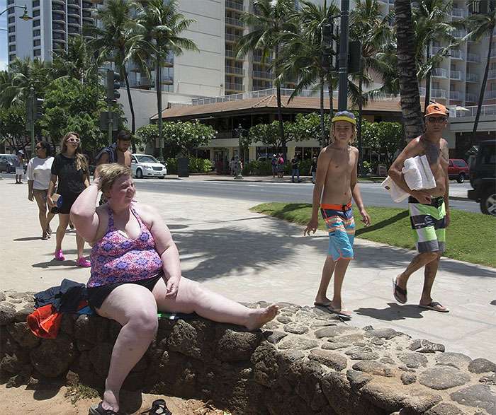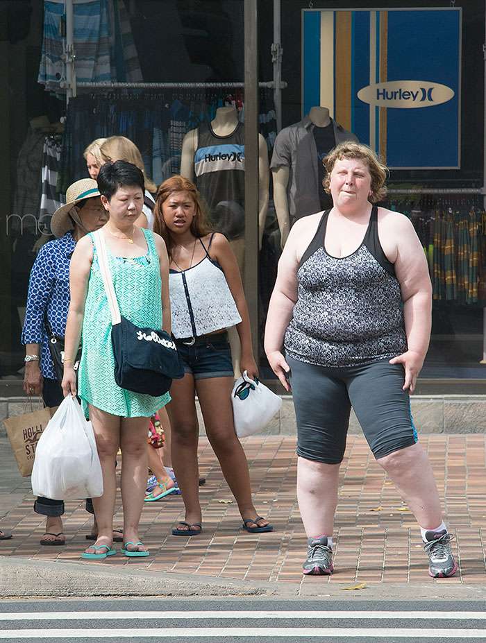 2018年02月23日當人們在看到過度肥胖的人,總是會忍不住多看兩眼,甚至投以異樣的眼光。美國攝影師Haley Morris Cafiero就是一位體型肥胖的女人,她偷拍了一組照片,記錄了路人在街上看到胖子的反應,這個胖子就是她自己,她稱之為社會實驗「等待觀察者」。
