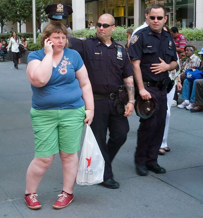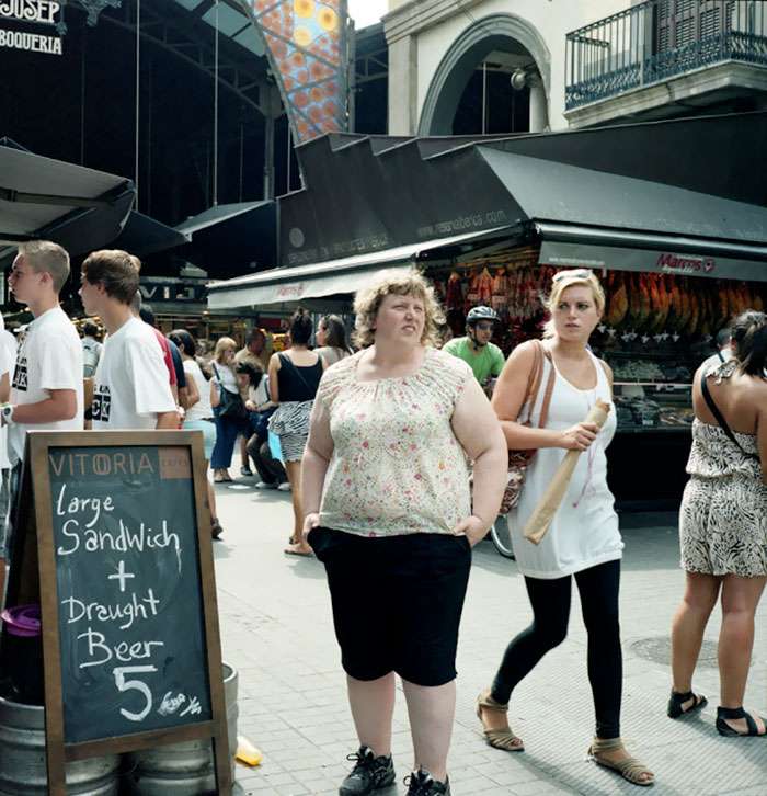 ▼她在一些公共場所安裝了一個三腳架,並拍下自己正常在街上的樣子,可能在打電話或者吃冰淇淋,她沒有打扮自己,就像一個隨意逛街的人,因為她不想讓自己的衣服引起別人的注意,只是想捕捉到路人對待一個普通胖子的真實反應。