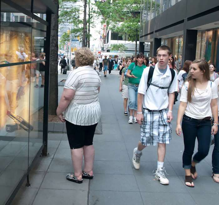 ▼Haley 的這一想法源於2010年,當她在時代廣場自拍後,她在照片中發現身後一個男人正盯著她看,帶著輕蔑的眼神,她時長會聽到有人評論她的體重,但從來沒有看到別人看到她時的反應,所以她決定拍下更多人看待胖子的反應。