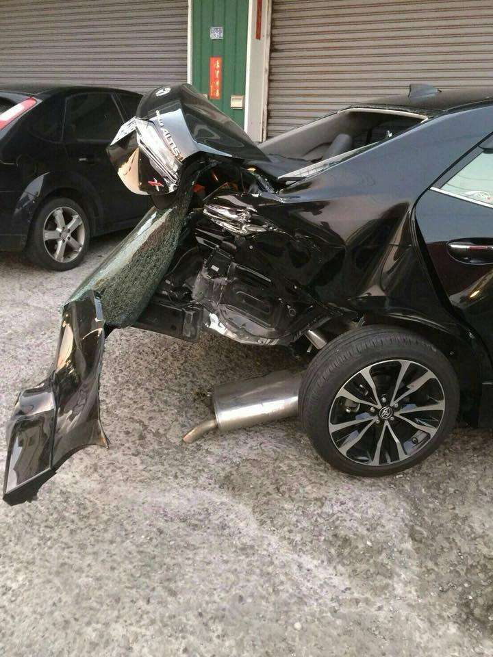 ▼VOLVO汽車還不只有一樁奇蹟事件,除夕時有VOLVO車主與Altis汽車對撞,車禍發生之後,黑色Altis後車廂被撞得「慘不忍睹」…