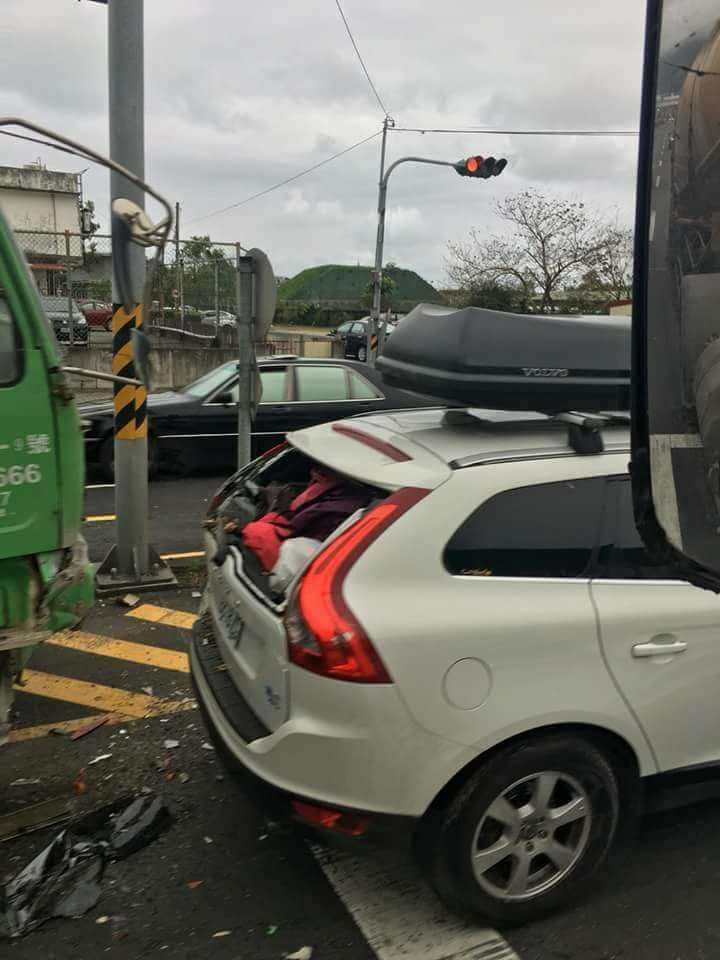 衝撞當下雖然VOLVO休旅車後方擋風玻璃碎裂,但是整個車型完整、沒有凹陷或零件掉落。反倒是魁武的砂石車保險桿掉落在地,「耐撞」能力竟然不及VOLVO!