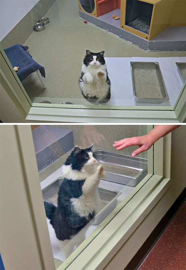 ▼「這隻貓咪13歲了,每次有人經過,牠都會把手手放在玻璃上。」