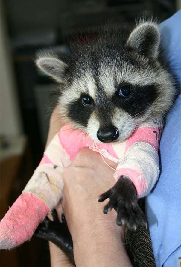 ▼「牠的兩條腿斷了,志工正在照顧牠。」